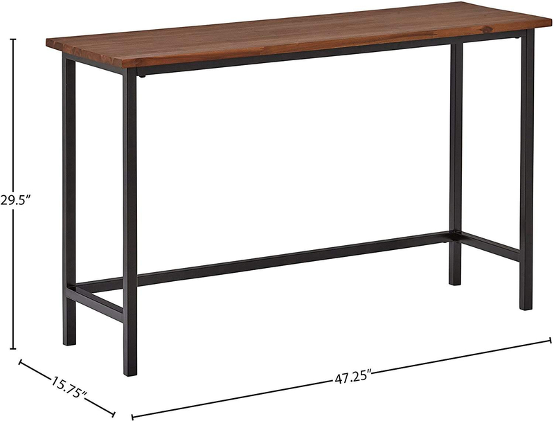This 53-inch rectangular bar table features a durable wooden tabletop and a sturdy black metal frame in a classic industrial style. The thick tabletop provides a smooth and stable surface, while the reinforced metal legs ensure strong stability and long service life. Simple lines and neutral colors perfectly match modern, industrial and rustic home decor. Ideal for kitchen counters, casual dining, home bar use and small commercial spaces.
