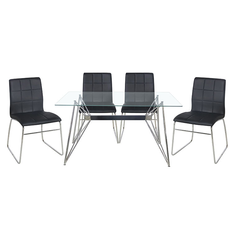 Complete glass dining table set including 1 table + 4/6 chairs. Modern design, durable metal frame, safe tempered glass, ideal for restaurant, kitchen and home use. Factory wholesale, stable quality, fast delivery.