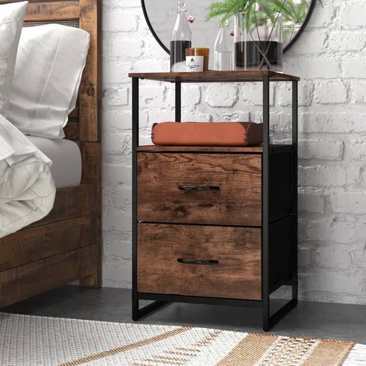 3-Tier Wide Nightstand with Fabric Drawers & Mirror Light Nightstand
