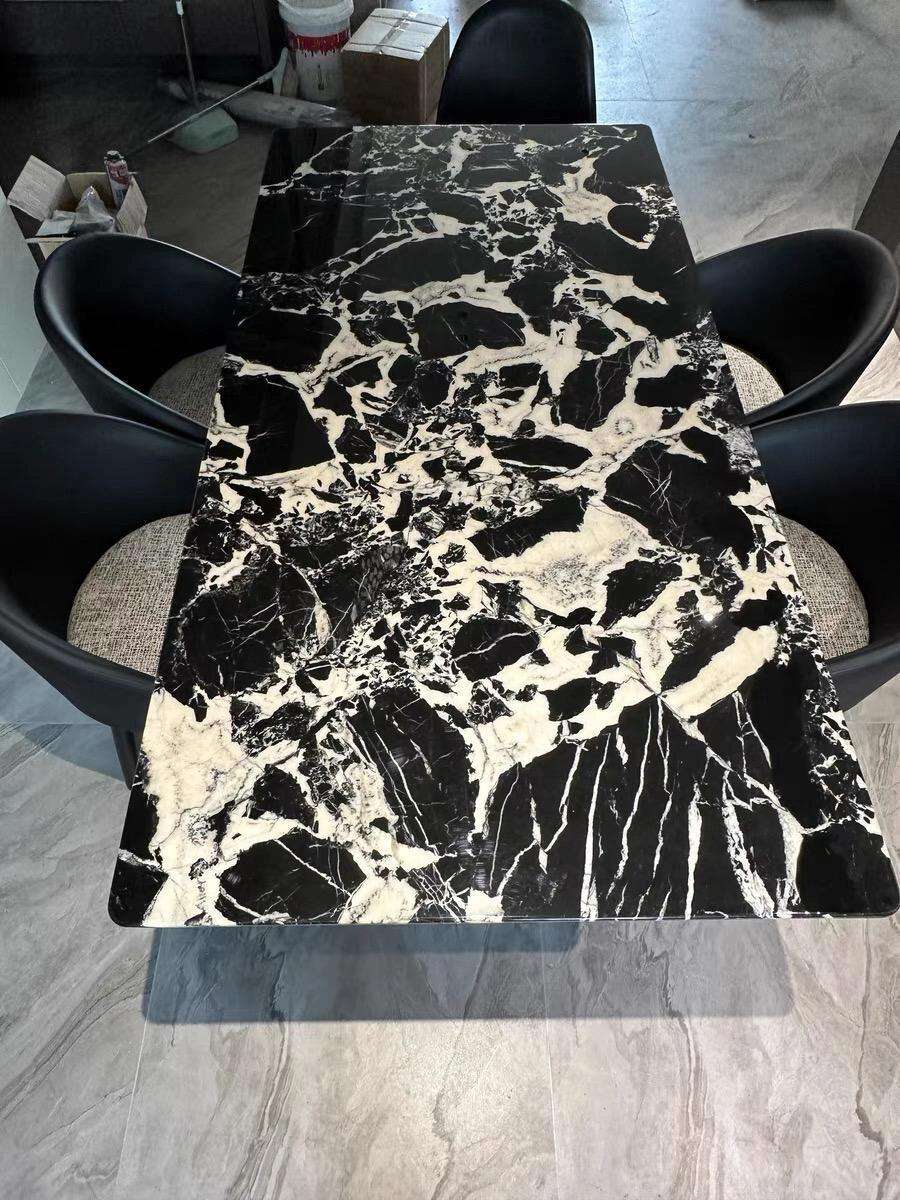 Selected natural black marble tabletop with unique natural texture, high hardness, wear-resistant and durable.