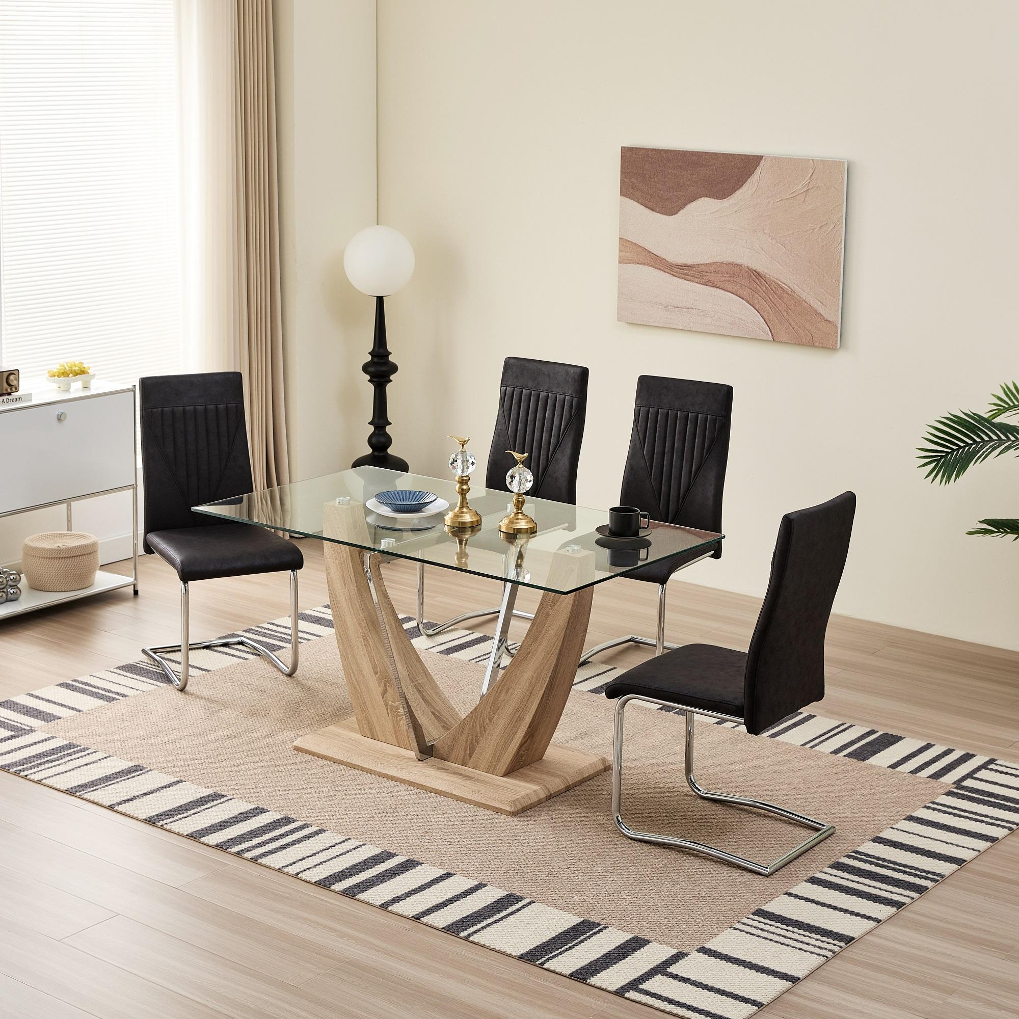 Our Modern Luxury Rectangular Tempered Glass Dining Table with V‑Shape Wood Legs blends sleek contemporary aesthetics with premium structural stability, designed for upscale homes, dining rooms, apartments, hotels, restaurants, and high‑end commercial spaces. Produced in our professional furniture factory with strict commercial‑grade quality inspection, every table features high‑strength safety tempered glass and solid wood V‑shape support legs, meeting international safety and durability standards for long‑term daily use. This stylish dining table is the top choice for homeowners, interior designers, hotel contractors, and bulk furniture buyers seeking modern luxury, easy maintenance, and reliable performance.