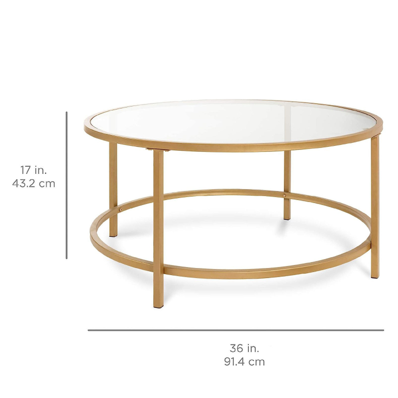 Modern Round Tempered Glass Accent Side Coffee Table for Living Room Dining Tea Home Decor with Satin Finished Metal Frame