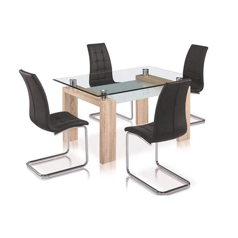 This modern 2020 style square tempered glass dining table and chair set is specially designed for hotel guest rooms, apartments, kitchens and small dining areas. The safe tempered glass tabletop is scratch-resistant, waterproof and easy to clean, with a stable metal frame for long service life. The matching padded chairs provide comfortable seating for daily use.