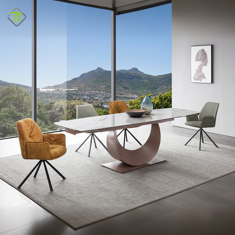 Nordic Moon Base Marble Top Dining Table Set For Home
