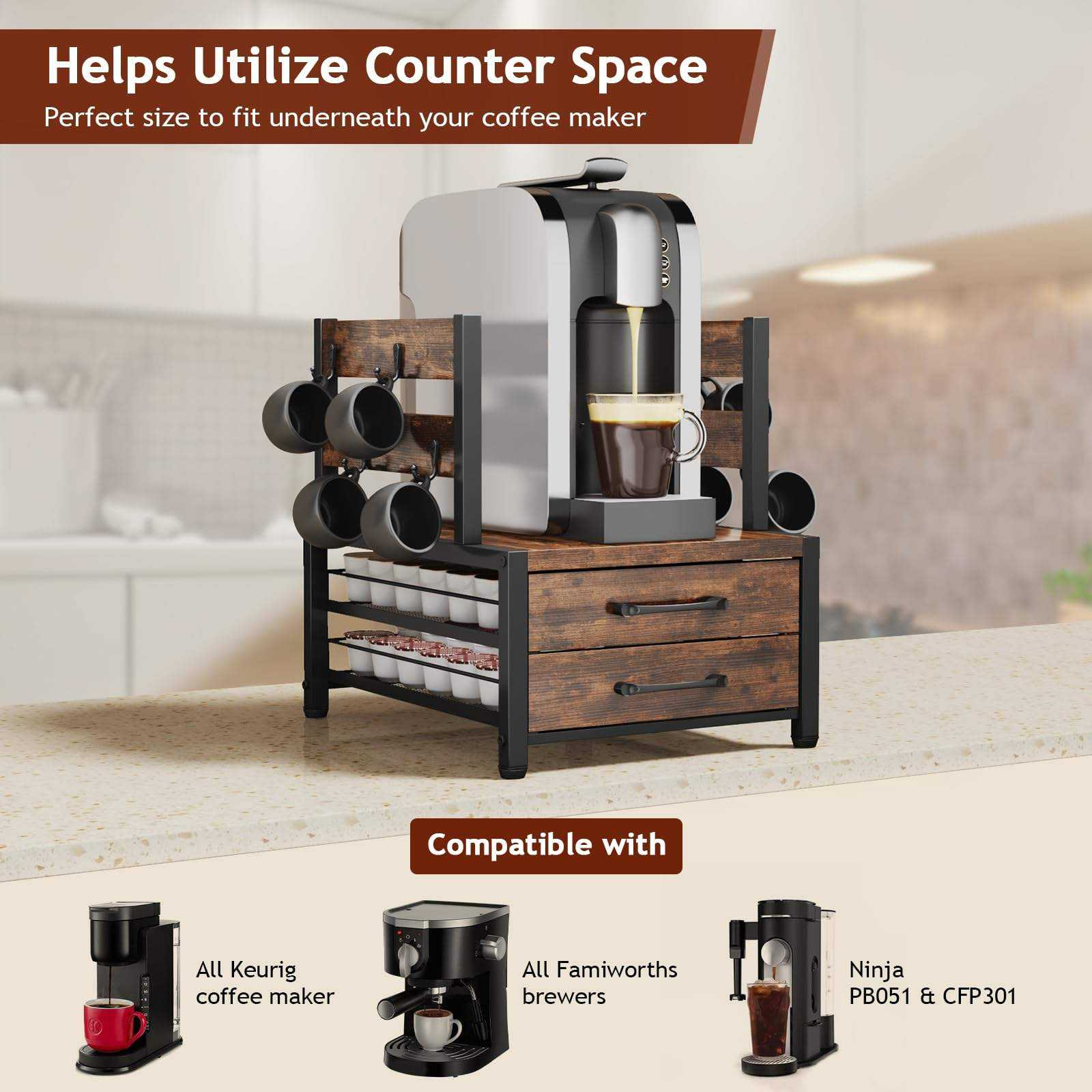 Equipped with storage drawer for small items: tea bags, spoons, filters, accessories
